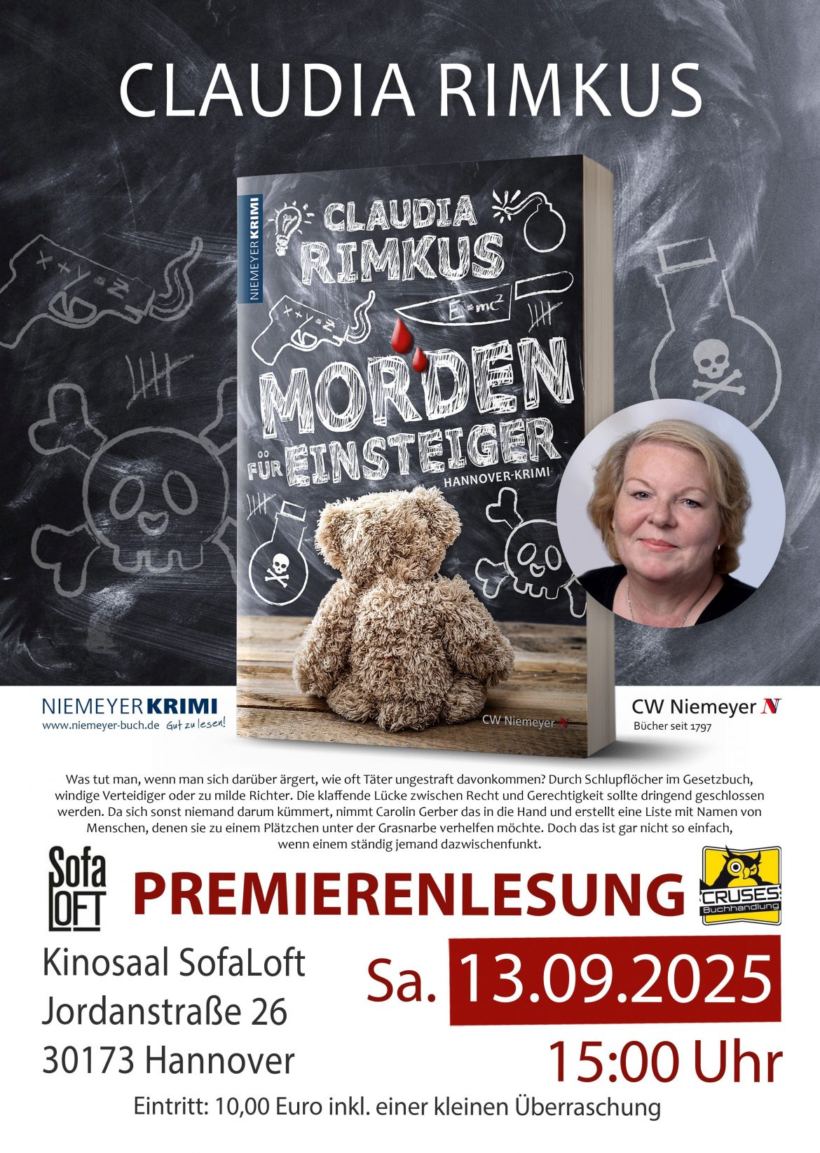 Claudia Rimkus liest aus ihrem neuen Krimi: Was tut man, wenn man sich darüber ärgert, wie oft Täter ungestraft davonkommen. Durch Schlupflöcher im Gesetzbuch, windige Verteidiger oder zu milde Richter. Die klaffende Lücke zwischen Recht und Gerechtigkeit sollte dringend geschlossen werden. Da sich sonst niemand darum kümmert, nimmt Carolin Gerber das in die Hand und