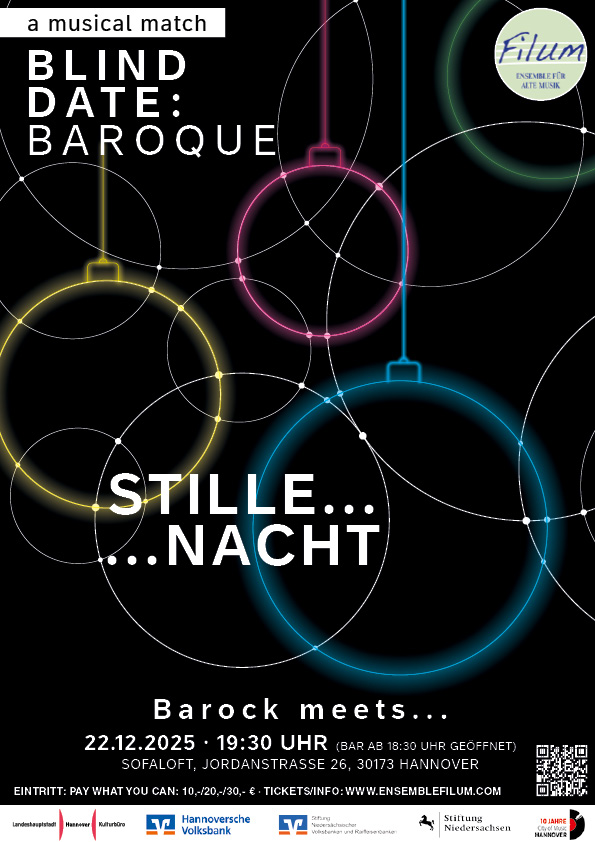 Mit einem besonderen Finale beschließt das Ensemble Filum am 22. Dezember 2025 im SofaLoft seine diesjährige Reihe „Blind Date: Baroque meets…“. Das Format bringt Musikerinnen und Musiker der Alten Musik mit Kunstschaffenden anderer Disziplinen zusammen und führt sie an ungewöhnliche Orte in Hannover. Nach Begegnungen mit orientalischer Musik, bildender Kunst und Rap öffnet das abschließende