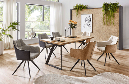 Tisch, Eiche natur | Designkufen schwarz | zweiseitiger Auszug, ausziehbar auf 270×90 cm