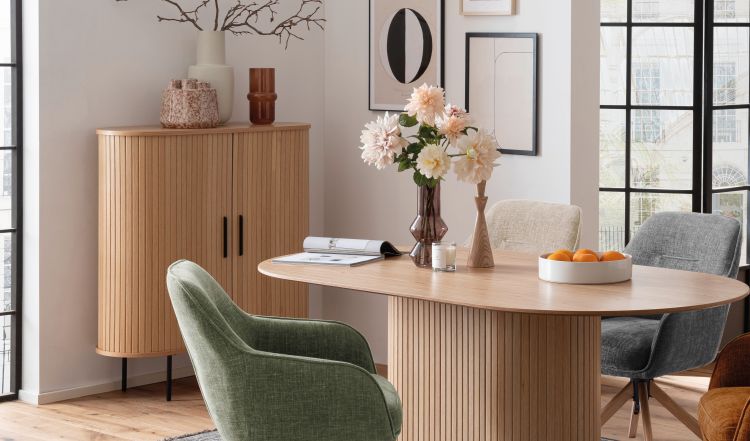 Eiche furniert | mit 2 Lamellentüren | Eiche Nachbildung | Griffe und Füße Metall schwarz | B/H/T ca. 100x118x40 cm